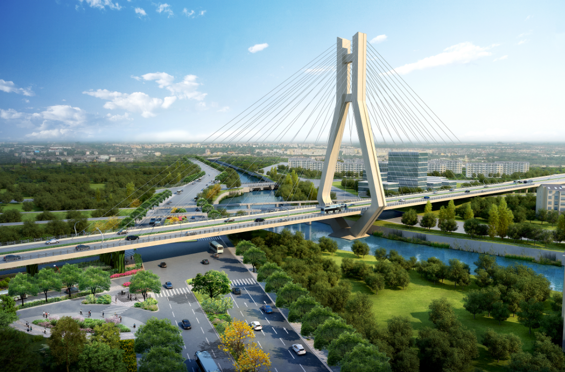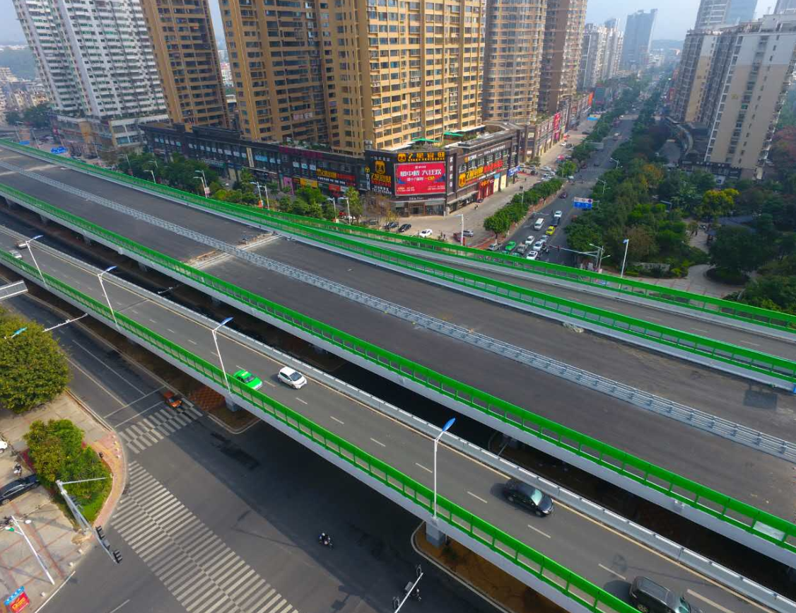 龍巖大道高架橋項目為省、市重點(diǎn)建設項目,是龍巖中心城市連接南北、溝通新老城區的重要樞紐,項目位于龍巖市南北交通中心軸和景觀(guān)軸線(xiàn)龍巖大道上,全長(cháng)3395m,包含橋梁和地面道路兩大部分,其中橋梁工程總長(cháng)2329m,橋寬26m,包含一座190+150m獨塔斜拉索鋼箱梁主橋(主橋寬36.3m),全線(xiàn)設計為雙向六車(chē)道,設計車(chē)速60km/h,在西陂路及人民路處各設置上下匝道,跨越雙洋路、羅龍東路、人民路、登高西路、西陂路城市主干道,項目總投資約24億元。