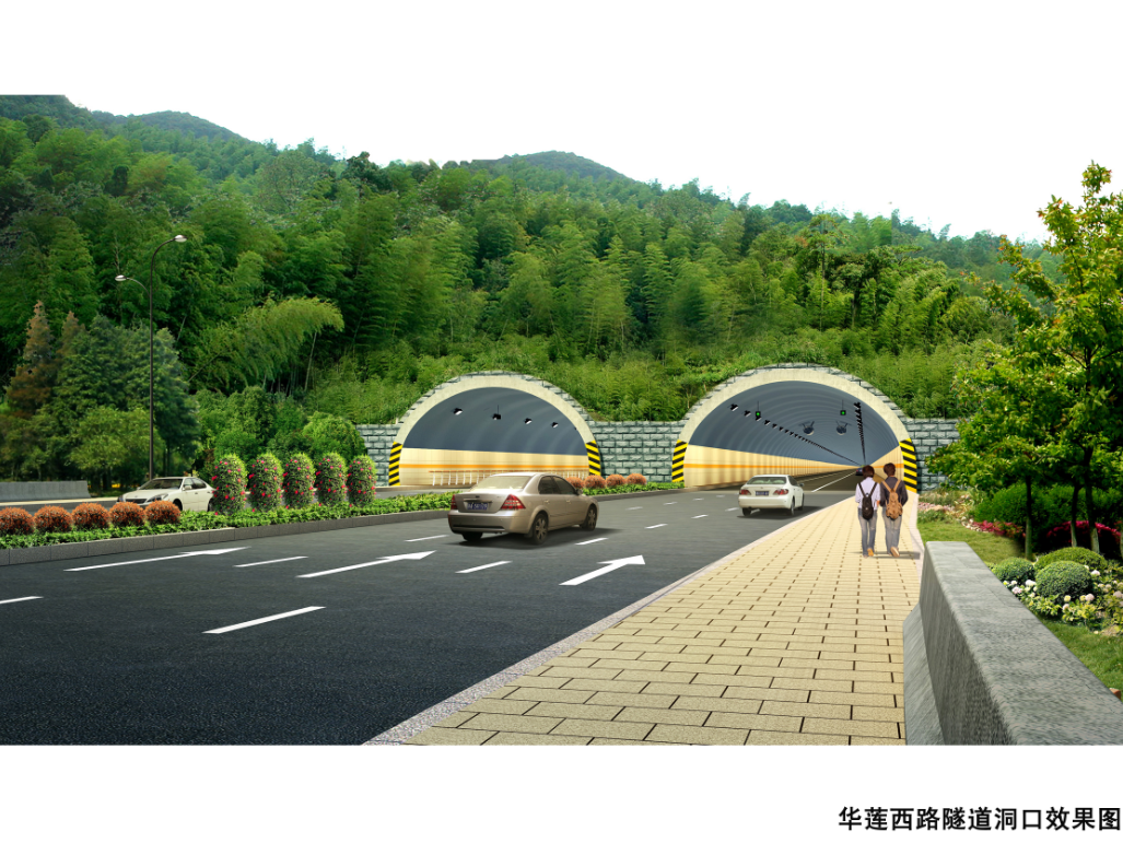 華蓮西路一期項目起于紅田路東,終于龍騰路,道路全長(cháng)2656米、寬40米,雙向六車(chē)道,采用改性瀝青路面,含橋梁五座和隧道一座,項目總投資5.4億元。